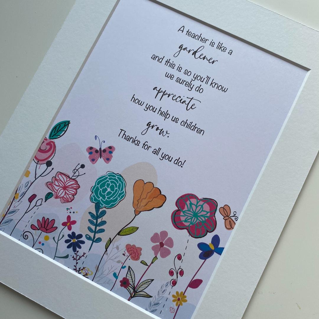 This beautiful floral illustration is 6″x8″ in size and when mounted as seen above the total size of this piece is 8″x10″.